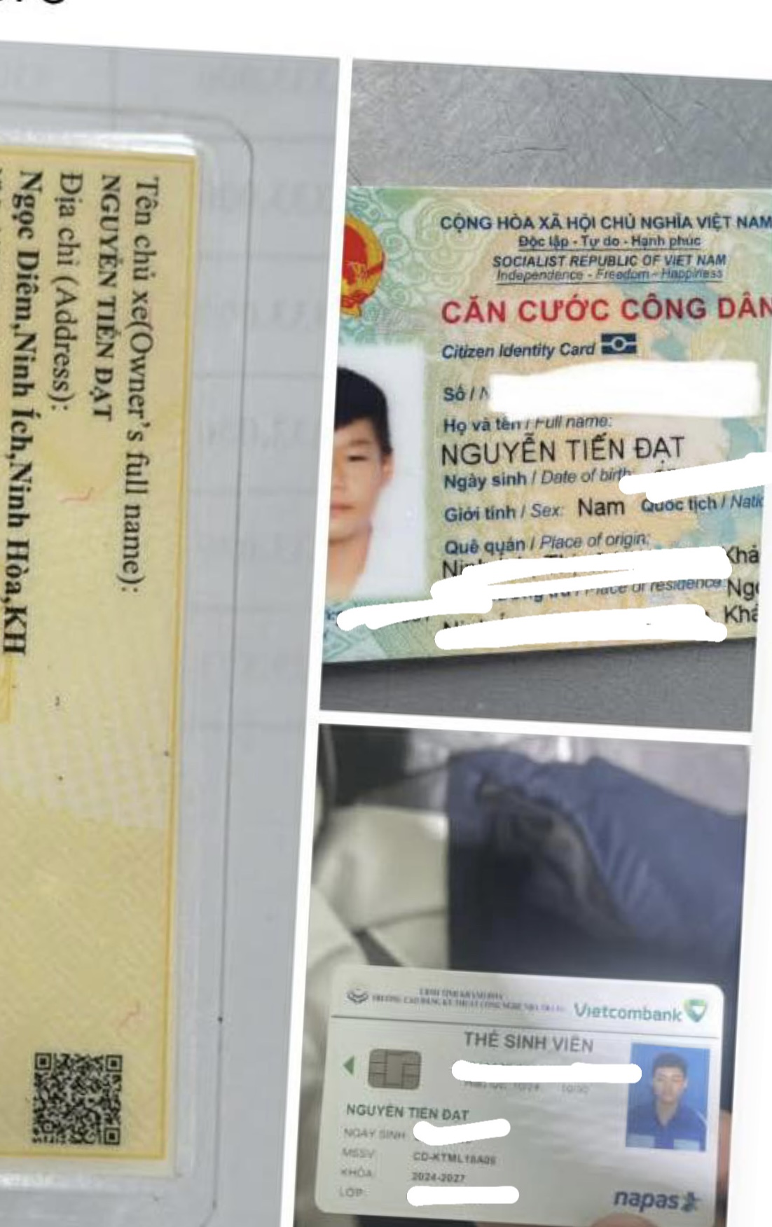 Nhặt được - Thẻ sinh viên,Giấy lái xe